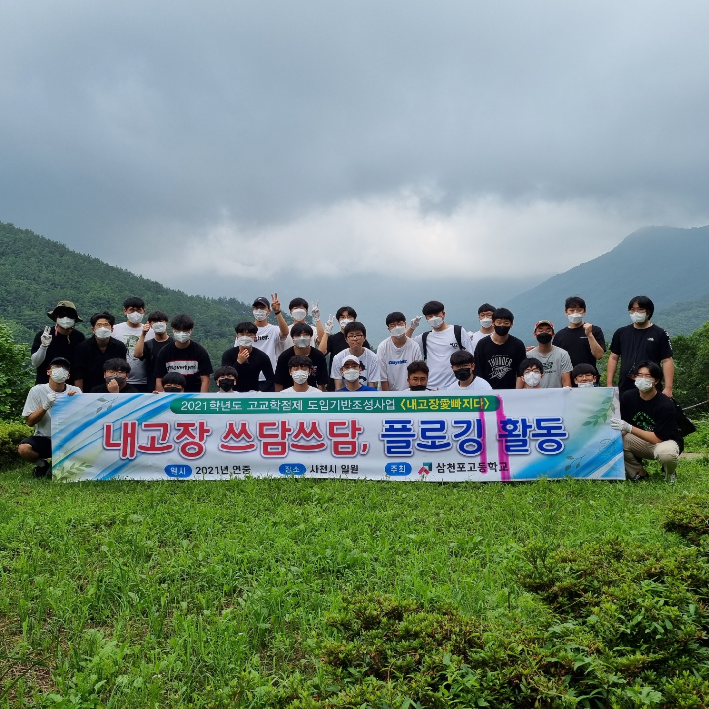 - 일시: 2021.7.10.(토) 10:00~ - 장소: 1학년 삼천포대교공원 일원 2학년 노산공원 일원 3학년 용두공원 일원 - 대상: 참가자 1,2,3학년+교사 145명 - 플로깅이란 조깅을 하면서 동시에 쓰레기를 줍는 운동으로, 스웨덴에서 시작돼 북유럽을 중심으로 확산됐다. 플로깅은 건강과 환경을 동시에 챙길 수 있다는 점에서 인기를 끌고 있다. 한편, 국립국어원은 2019년 11월 ‘플로깅’을 대체할 우리말로 ‘쓰담달리기’를 선정한 바 있다.