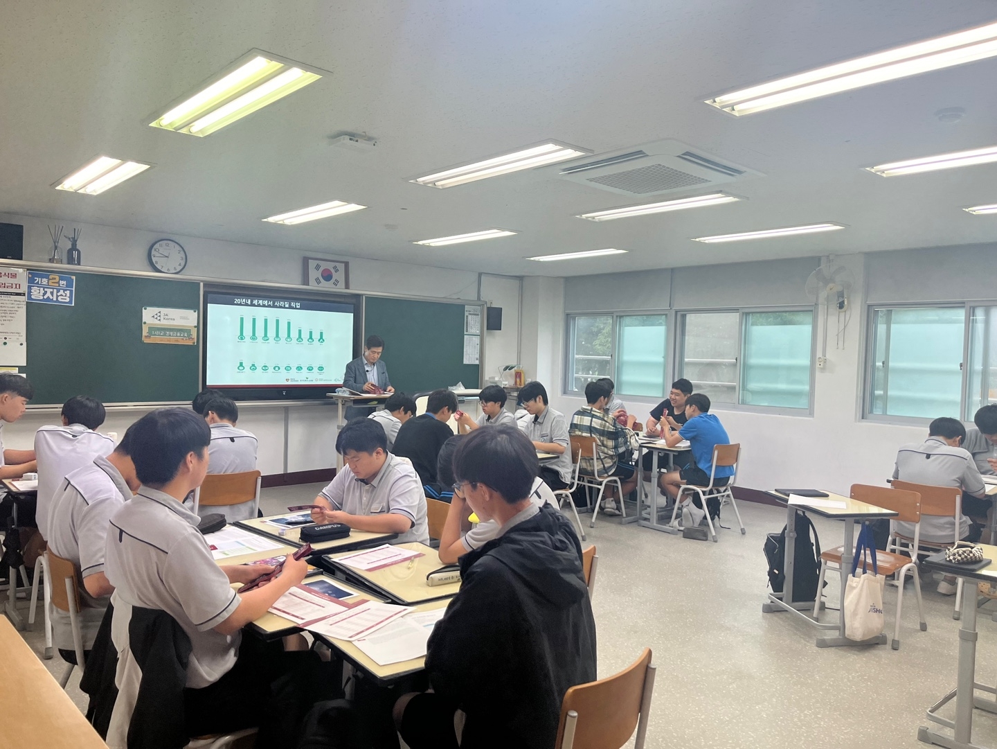 7월 17일 1학년 각 학급 2시간의 경제 교육이 실시되었습니다.